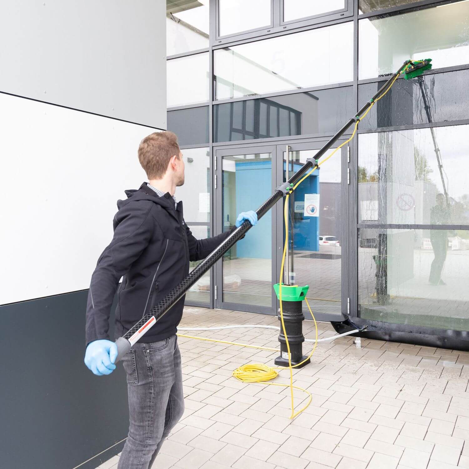 Komaj čakate, da končno začnete čistiti svojo fasado? Potem imamo za vas dobro novico. HERMES gumijasti lovilec 2.0 za umazano vodo lahko postavite v hipu in je pripravljen za uporabo. Ko se odvije iz prostora, ki prihrani prostor, se oblikuje s trakovi za hitro sprostitev in obloži s tesnilno pasto na steno hiše. Nato se lahko začne čiščenje. Sistem, ki je tako edinstven, da je bil patentiran. Novo: Izboljšan model 3.0 30 % hitrejša namestitev zahvaljujoč na novo zasnovanim trakom – ne bi moglo biti bolj učinkovito! Do 90 % večja količina vode* zaradi odprave odprtin – za največjo prilagodljivost. Varen transport – notranji trakovi ščitijo pred poškodbami. Brez nadležnih zunanjih trakov – večja svoboda gibanja, urejen videz in pladenj za zbiranje tekočine se lahko hitreje odvije in umakne. Enostavno rokovanje – izboljšane trakove lahko upravljate tudi z rokavicami ali z eno roko. *V neposredni primerjavi s pladnjem za kapljanje 2.0. S pladnjem za kapljanje na vodoravni površini.