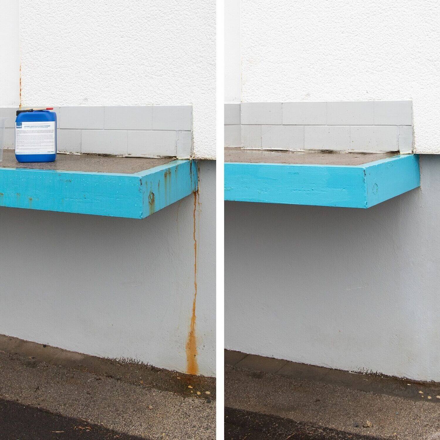 HERMES odstranjevalec madežev rje (HRE) v zelo kratkem času odstrani značilne rdeče-rjave madeže rje in film rje z mineralnih površin, kot so fasade, ploščice, beton, asfalt in drugi materiali, kot so avtomobilske barve, tekstil, les, plastika itd. Želatasta konsistenca HRE omogoča, da se nanese neposredno na madeže rje brez teka, tudi na navpičnih površinah. HRE je zaradi naravnih sestavin še posebej okolju prijazen. Kako se nanaša? Gel enakomerno in gosto nanesite na madeže rje ali površinsko rjo s čopičem, krpo ali valjčkom. Če ga obdelate s čopičem, še povečate učinek čiščenja. Po kontaktnem času 2-30 minut sperite z vodo ali obrišite z vlažno krpo. Če madež rje ni popolnoma odstranjen po prvem nanosu, lahko postopek ponavljamo, dokler ne dosežemo želenega rezultata.